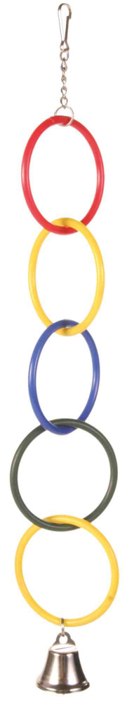 Vašem pernatom ljubimcu će se sigurno svideti ova igračka u obliku plastičnih prstenova sa metalnim zvonom na lancu. Ako stavite ovu igračku u kaveze Vašeg ljubimca - to će ga zabaviti, naterati ga da se kreće, što će doprineti njegovom zdravlju i dugovečnosti. Ova igračka biće neizostavan dodatak kavezu Vašeg pernatog ljubimca.