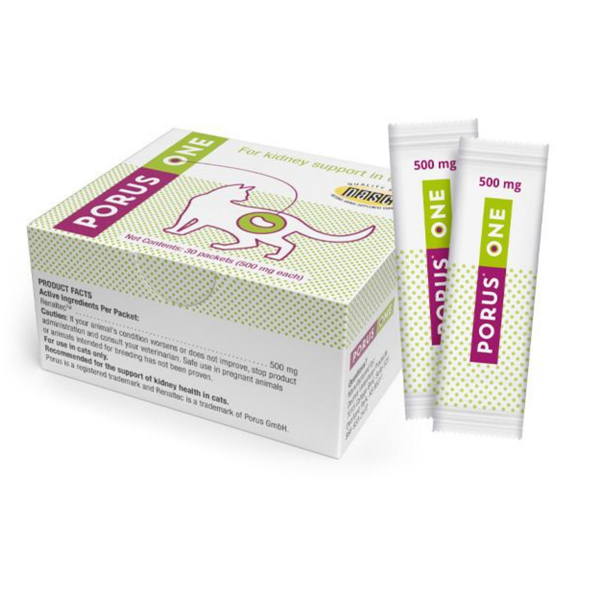 Porus One ne ulazi u krvotok, ne opterećuje druge organe i deluje lokalno u crevima. Bez ukusa je i mirisa, lako se meša sa hranom i mačke ga najčešće veoma dobro prihvataju, što svakodnevnu primenu čini jednostavnom i bez stresa.