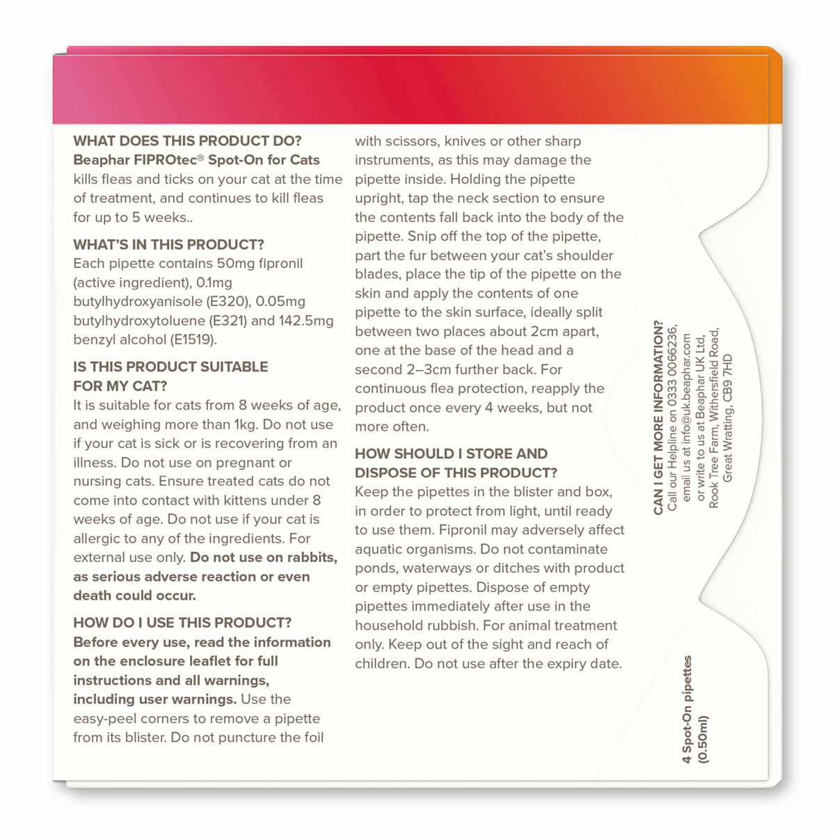 Beaphar FIPROtec® Spot-On za mačke predstavlja veterinarski preparat sa fipronilom, namenjen za kontrolu buva i krpelja kod mačaka i mačića starijih od 8 nedelja, telesne mase preko 1 kg.
